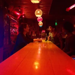The diversity of the music and patrons is reflected in the rather hodgepodge dГ©cor, which features 70s brown floral wallpaper and a dance floor bathed in a deep red glow in one room, and a 1950s diner motif complete with swiveling counter stools and a circular sea-foam green bar in the other room.