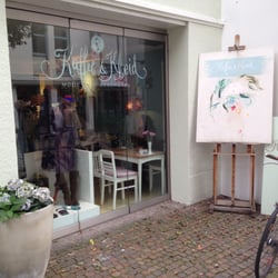 Durch einen Tip sind wir im Kaffee und Kleid gelandet und wurden nicht enttäuscht, im Gegenteil! Mit sehr viel Engagement und liebevoll gestalteter Einrichtung gibt es selbstgebackenen Kuchen und köstlichen Kaffee. Eine große Auswahl von Teesorten rundet das Angebot ab. Der Kuchen war sehr lecker! Zusätzlich gibt es Mode für Frauen aus Skandinavien. Tolles Konzept!