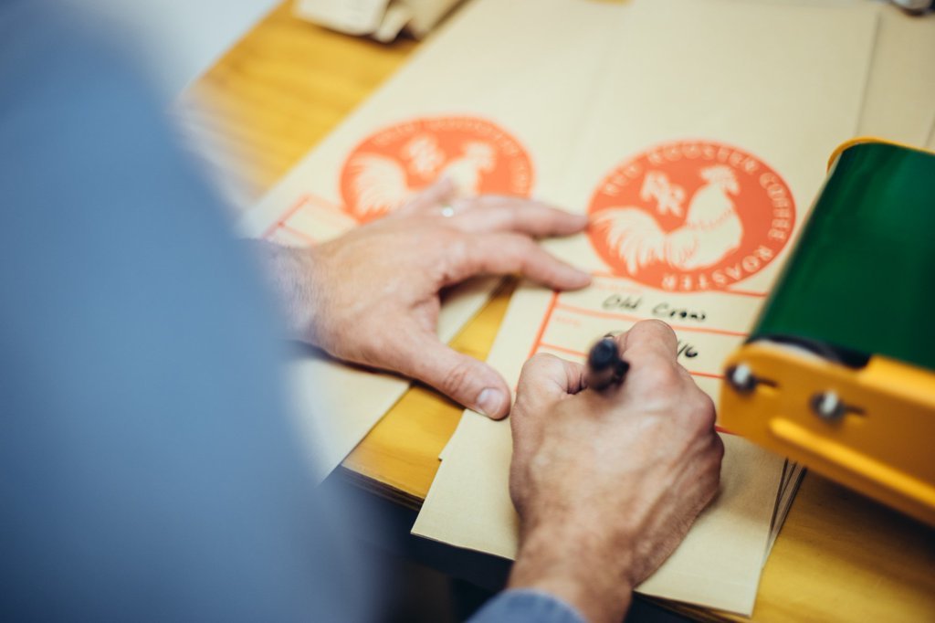We roast to order, so each wholesale bag gets a name and a date.