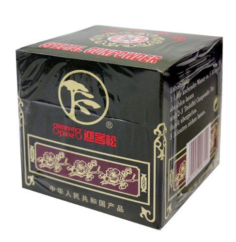 Gunpowder ist ein verbreiteter grüner Tee aus China. Seinen Namen “Schießpulver” erhielt er, da er in kleinen Kügelchen, die an Schrotkugeln erinnern, ausgeliefert wird. Er hat den höchsten Koffeingehalt aller grünen Tees und wirkt daher sehr anregend. Sein Geschmack ist herb und angenehm würzig.