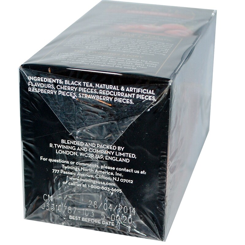 - Fine Black Tea Perfectly Balanced with the Luscious Flavor of Strawberry, Cherry, Raspberry & Redcurrant.